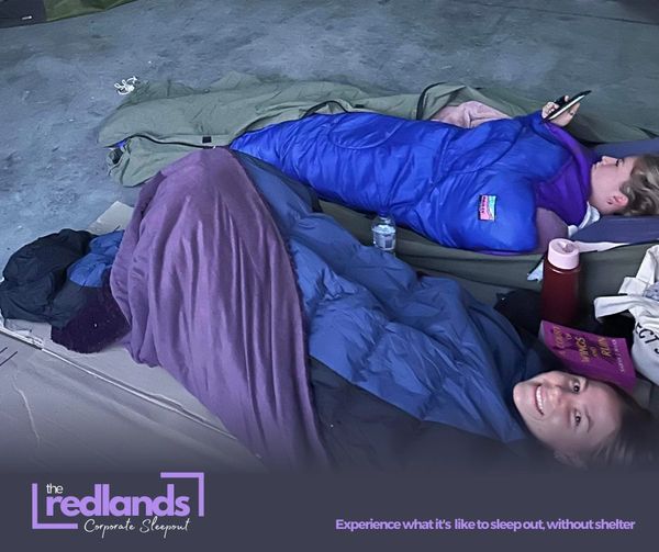 "The 2023 Redlands Corporate Sleepout was a humbling experience that gave us a brief insight into the challenges of homelessness. Spending a night with minimal comforts made us appreciate the simple luxuries we often overlook. We were grateful for the opportunity to have participated, as it has left a lasting impression on us and has reinforced the value of compassion and understanding in our community."